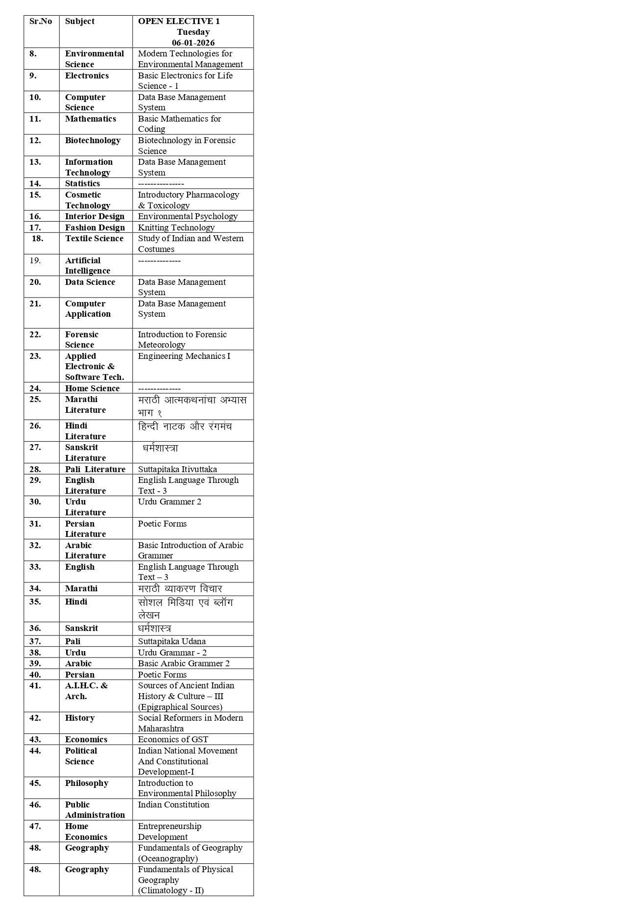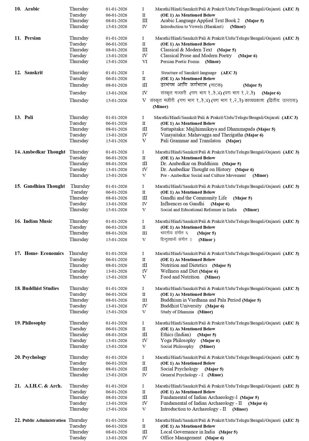 RTMNU Courses List For Timetable Download PDF–