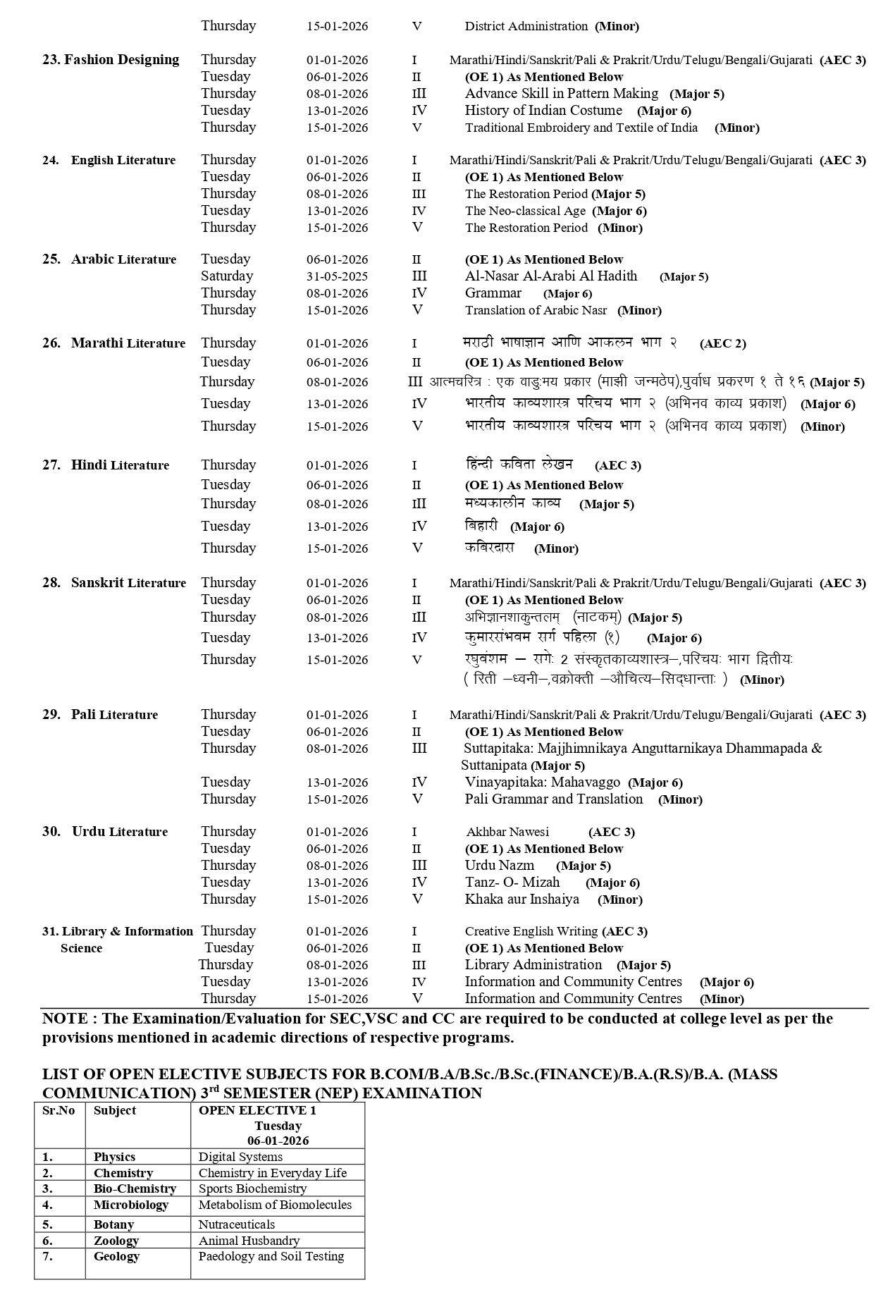 • Check as per respective courses and Programmes Exam Date Sheet.